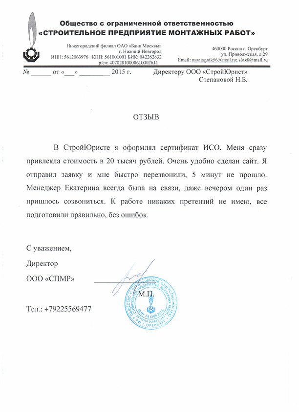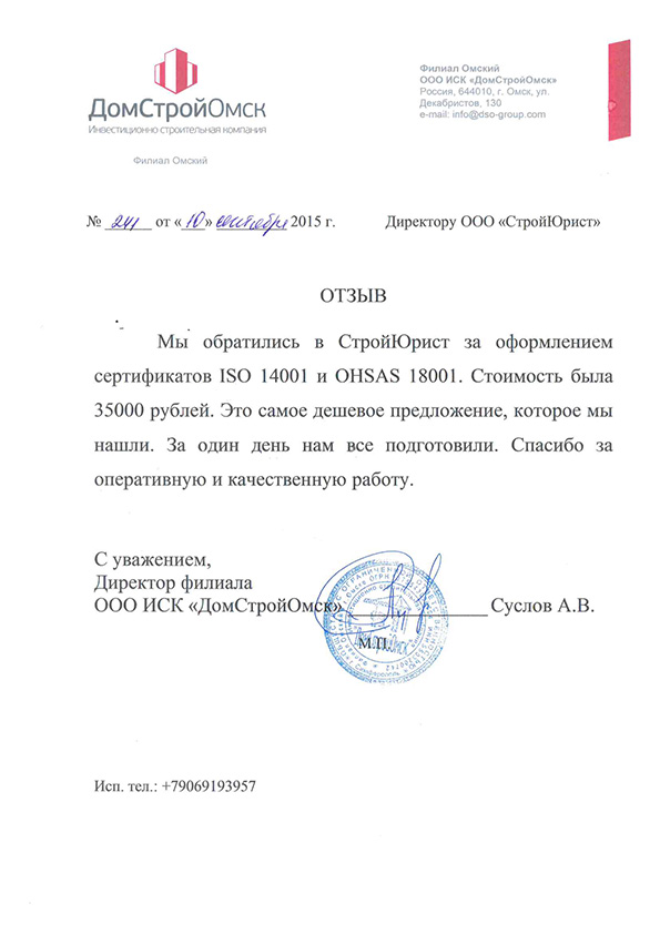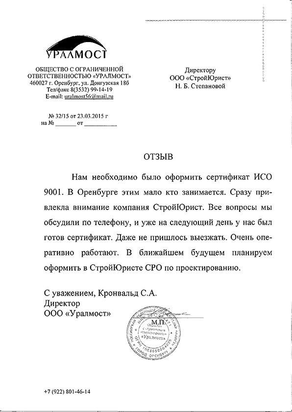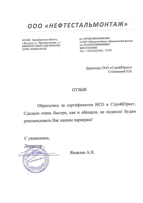 Отзывы клиентов "СтройЮрист" по ISO в Ханты-Мансийске