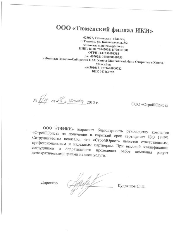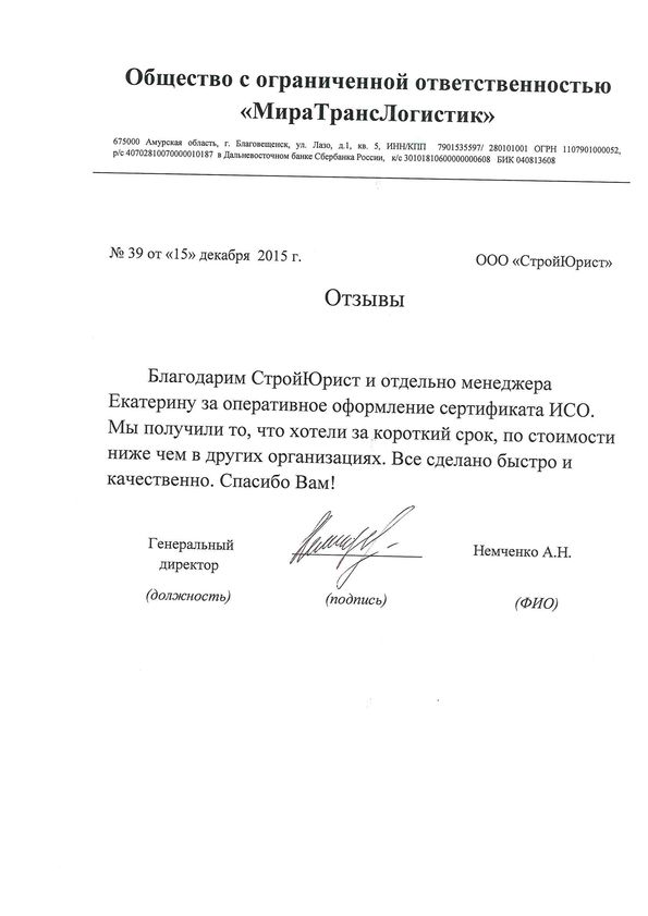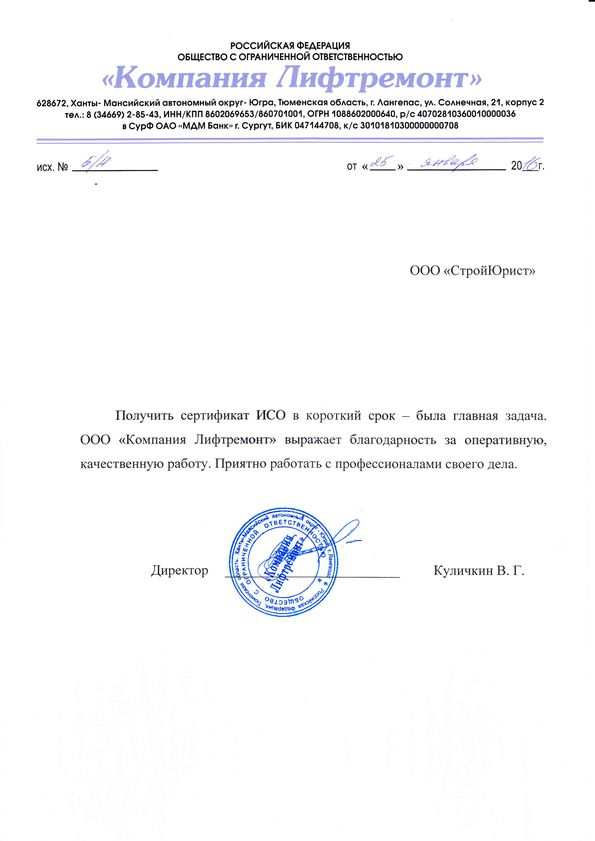 Отзывы клиентов "СтройЮрист" по ISO в Ханты-Мансийске