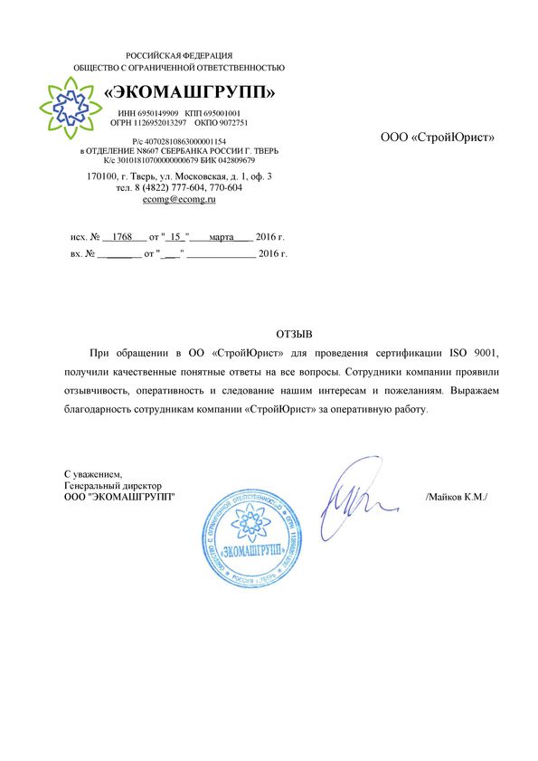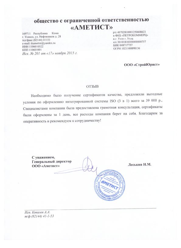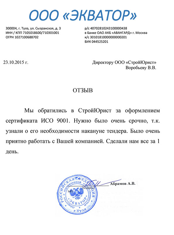Отзывы клиентов "СтройЮрист" по ISO в Ханты-Мансийске