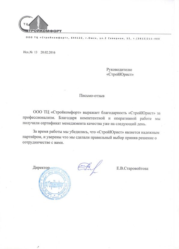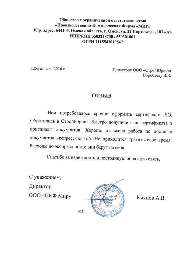 Отзывы клиентов "СтройЮрист" по ISO в Ханты-Мансийске