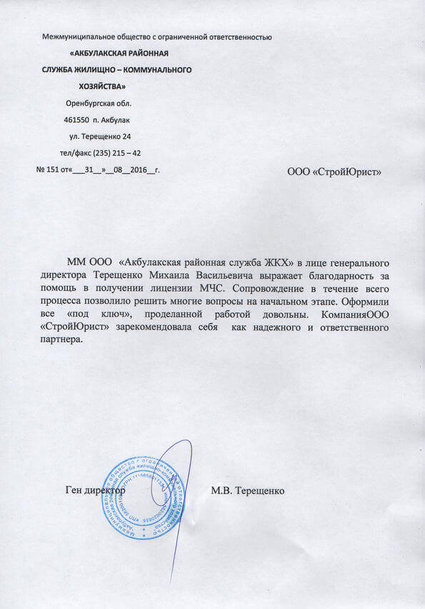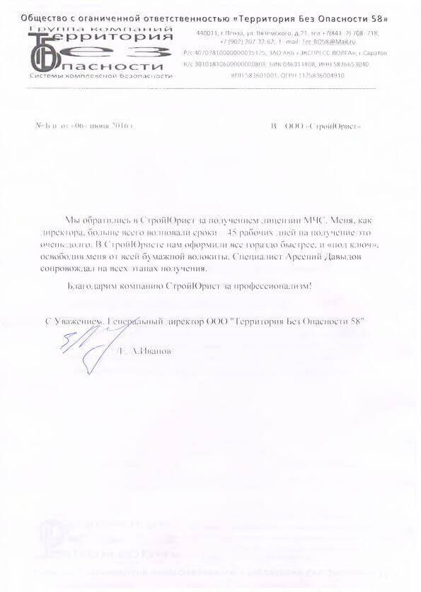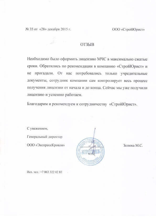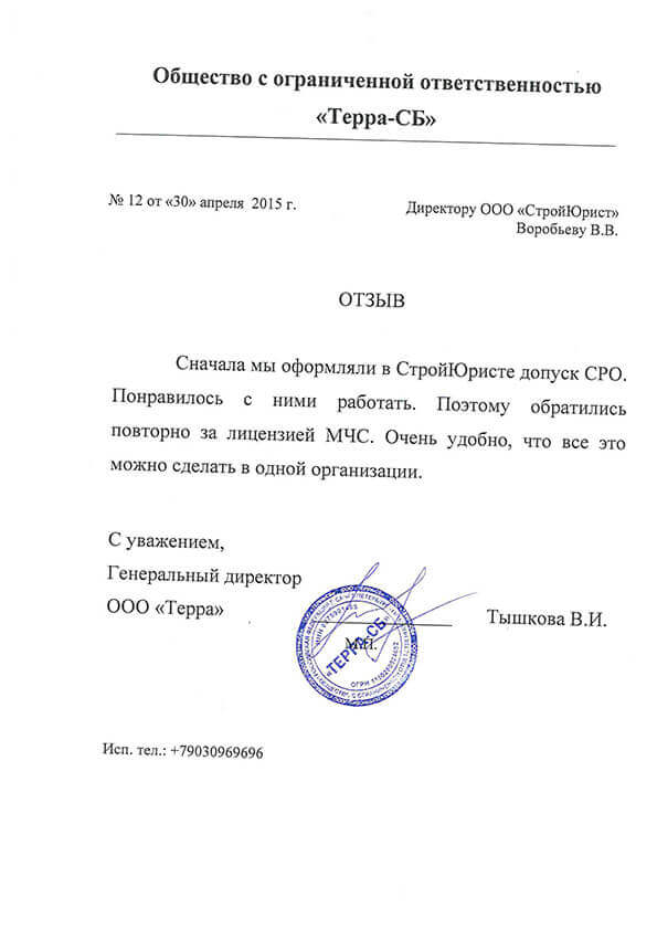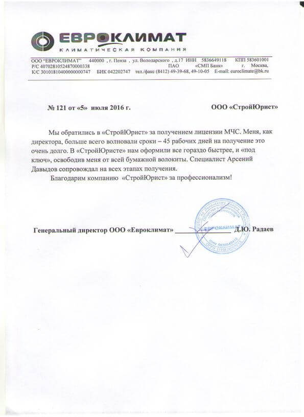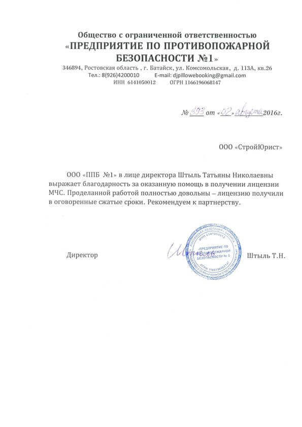 Отзывы клиентов "СтройЮрист" по лицензированию МЧС в Ханты-Мансийске