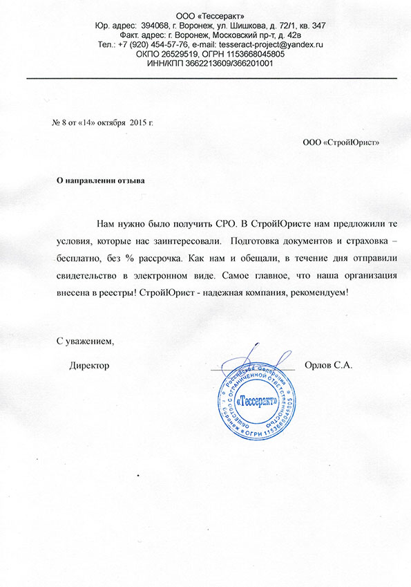 Отзывы клиентов "СтройЮрист" по вступлению в СРО в Ханты-Мансийске