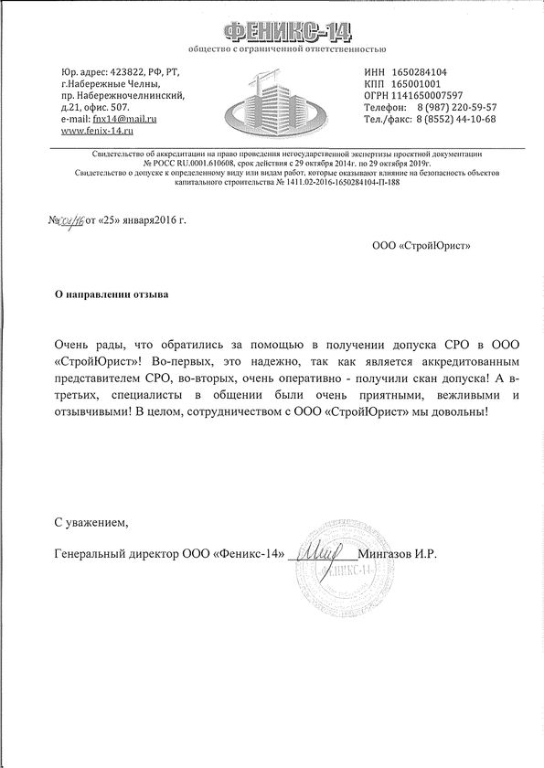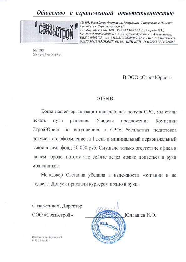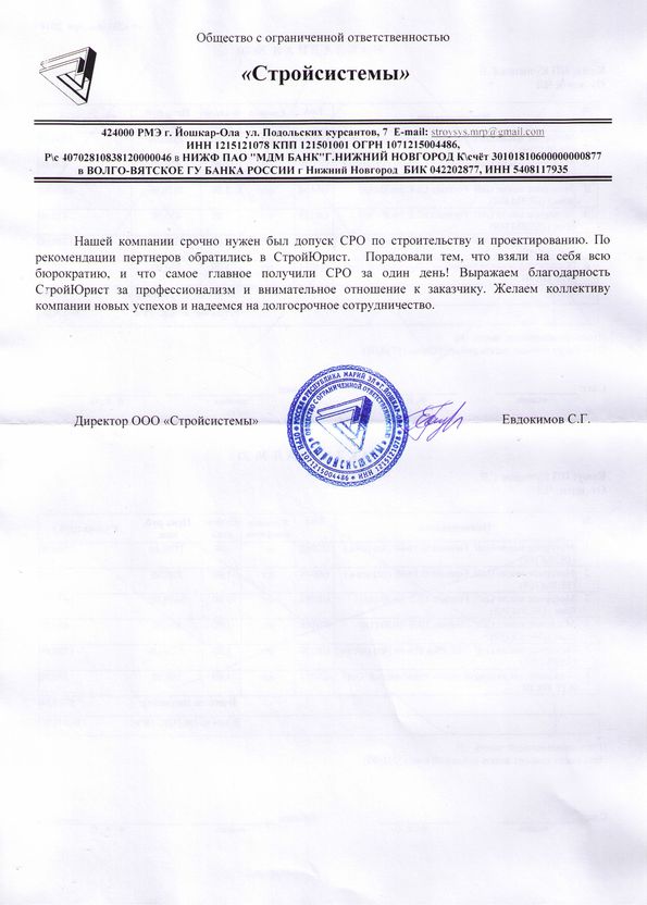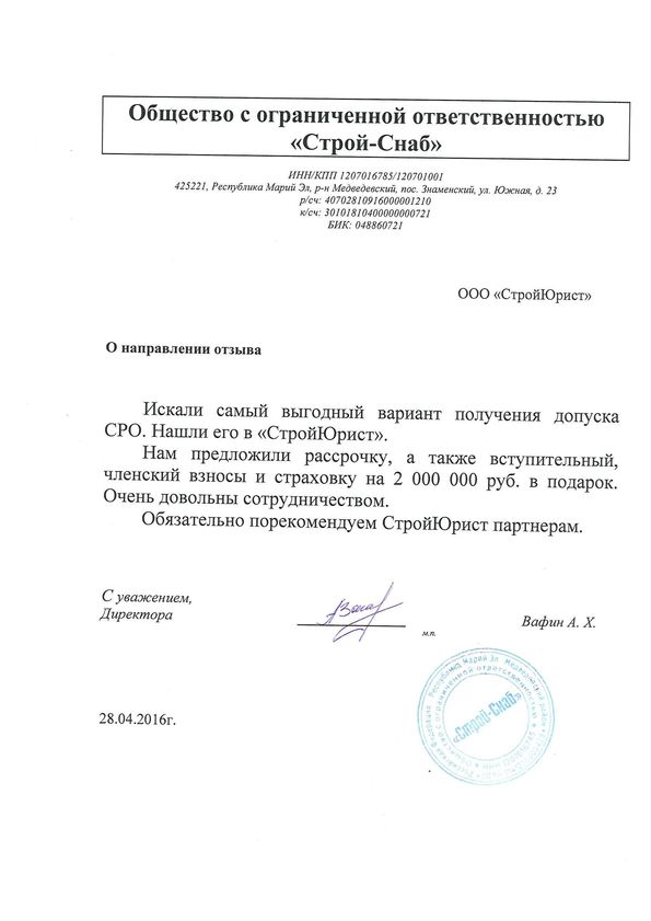 Отзывы клиентов "СтройЮрист" по вступлению в СРО в Ханты-Мансийске