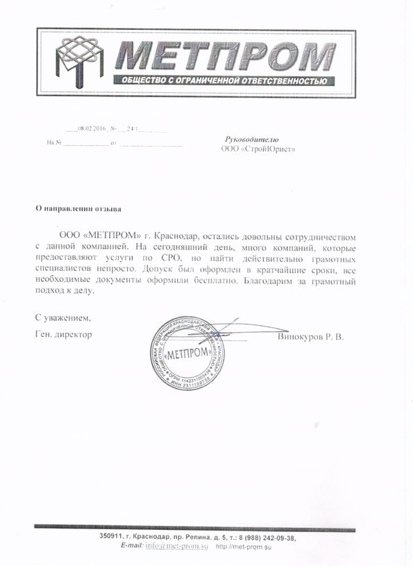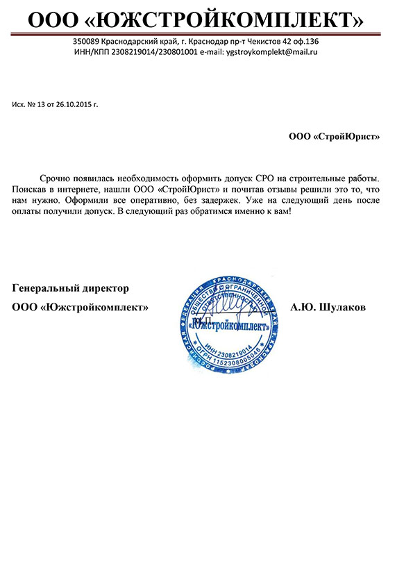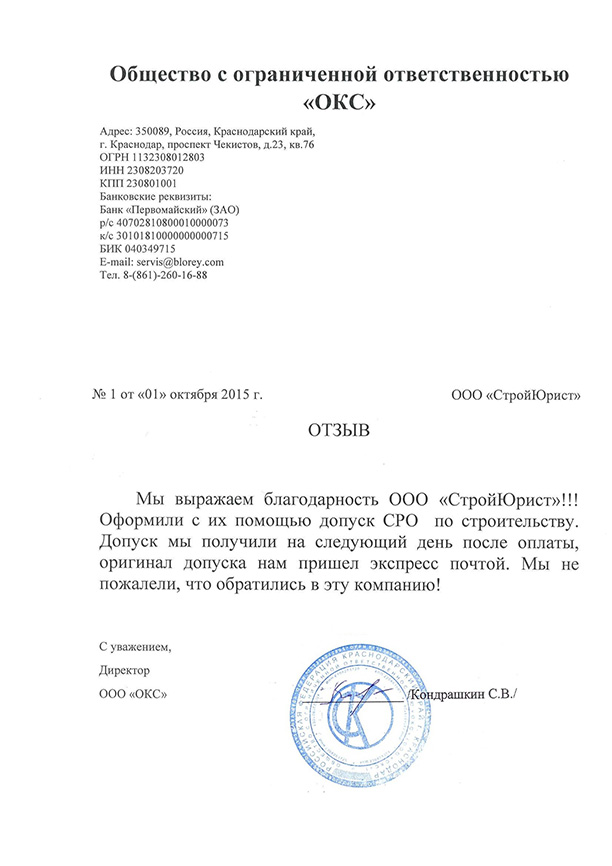 Отзывы клиентов "СтройЮрист" по вступлению в СРО в Ханты-Мансийске