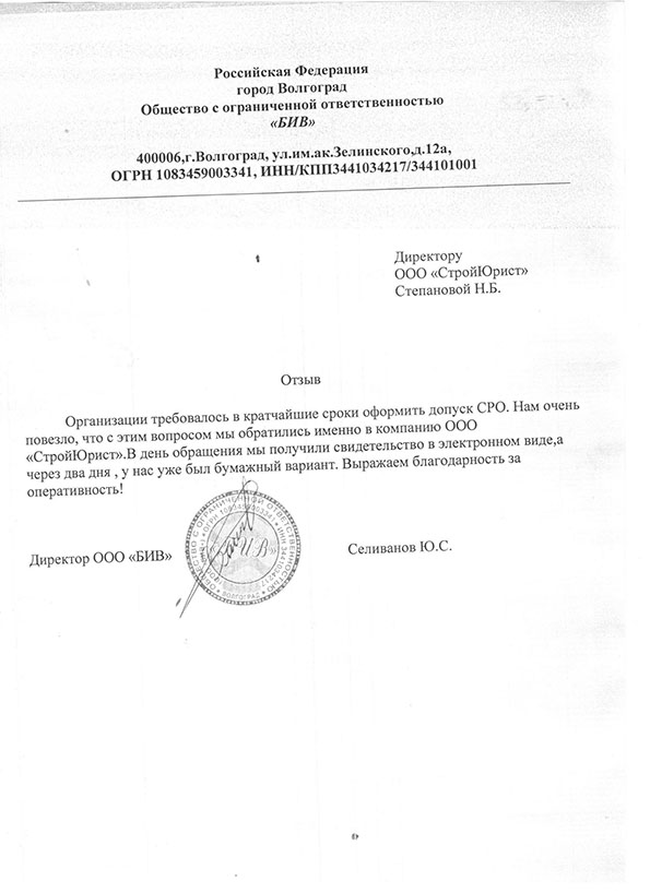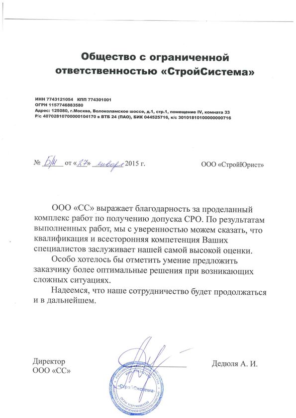 Отзывы клиентов "СтройЮрист" по вступлению в СРО в Ханты-Мансийске