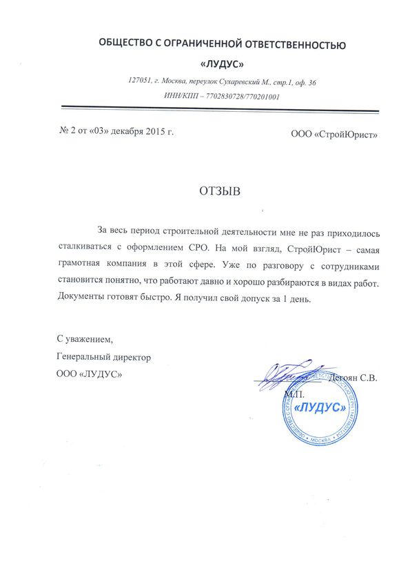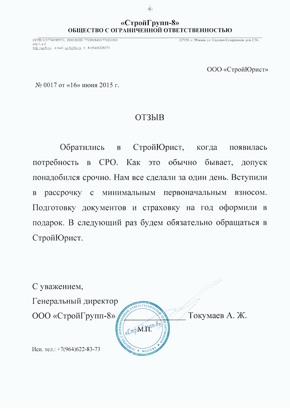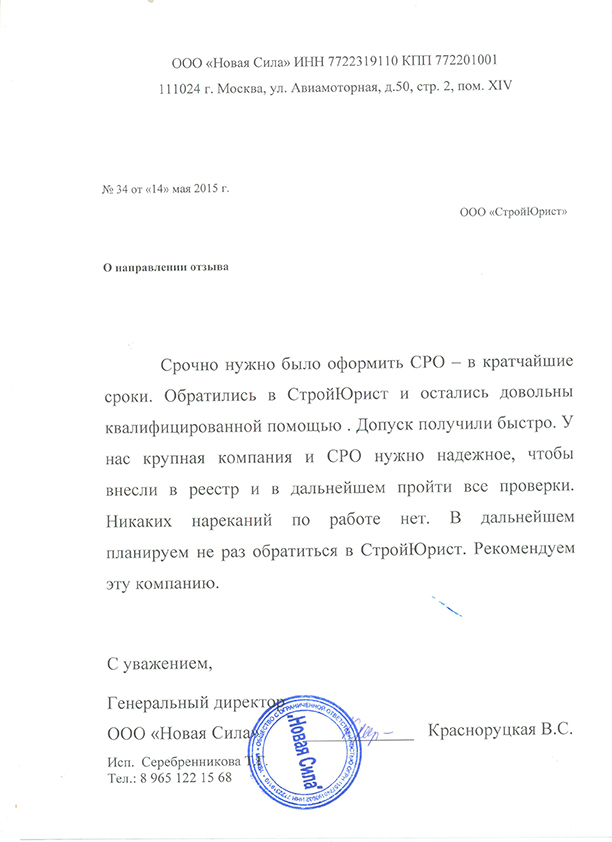 Отзывы клиентов "СтройЮрист" по вступлению в СРО в Ханты-Мансийске