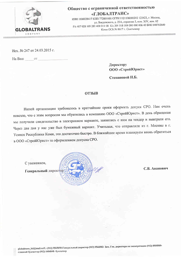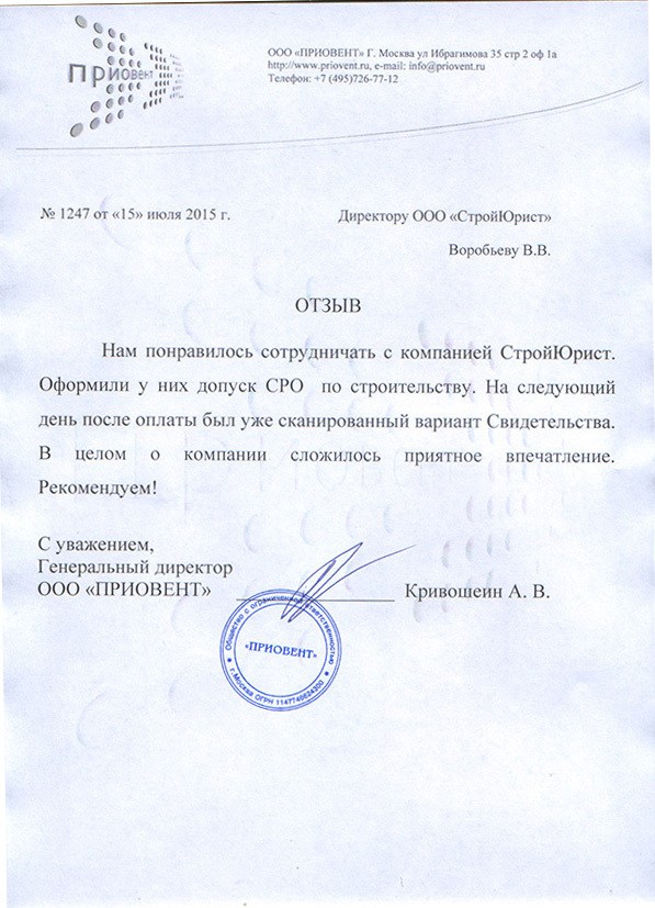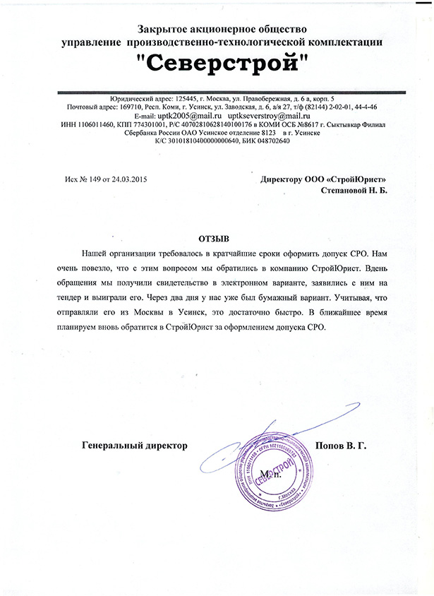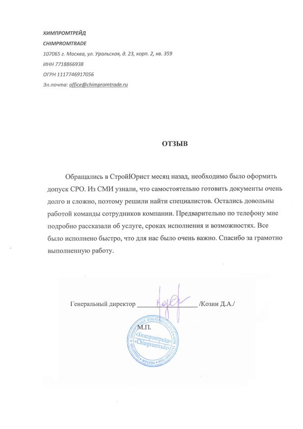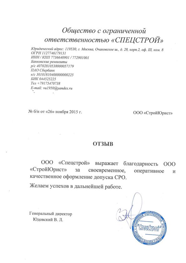 Отзывы клиентов "СтройЮрист" по вступлению в СРО в Ханты-Мансийске