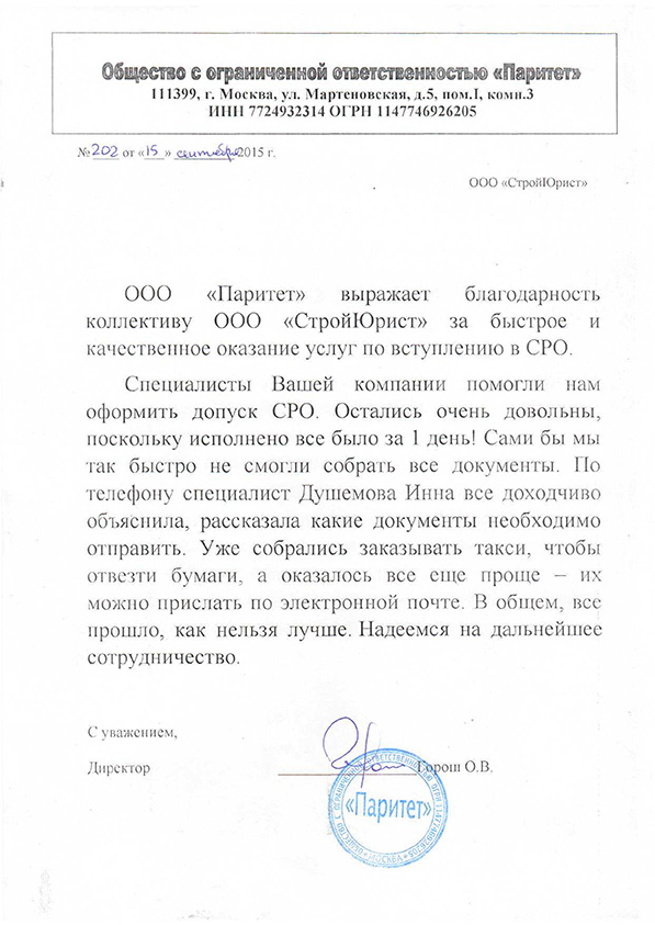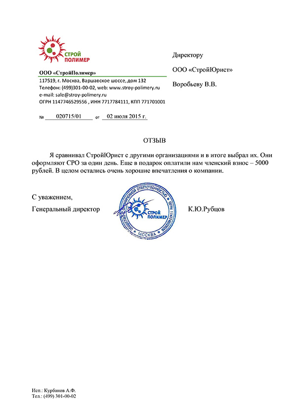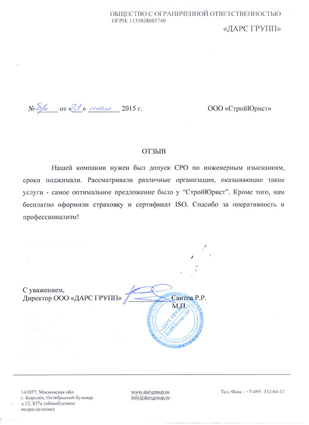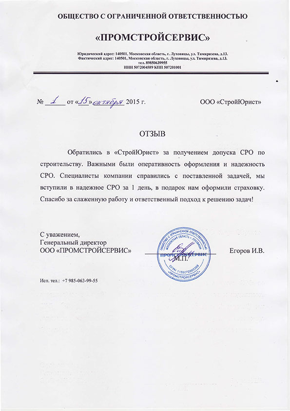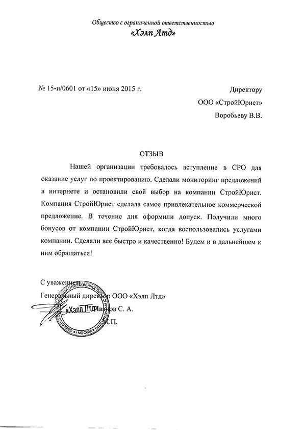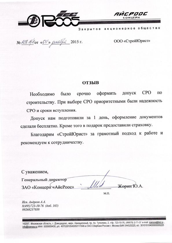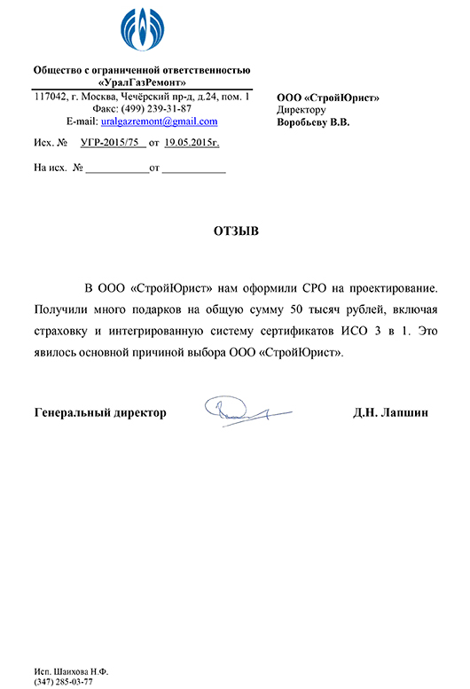 Отзывы клиентов "СтройЮрист" по вступлению в СРО в Ханты-Мансийске