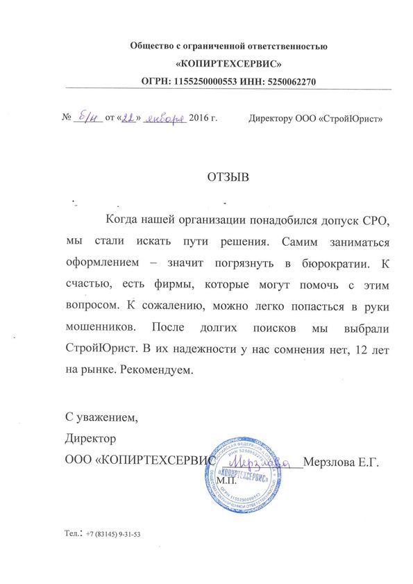 Отзывы клиентов "СтройЮрист" по вступлению в СРО в Ханты-Мансийске