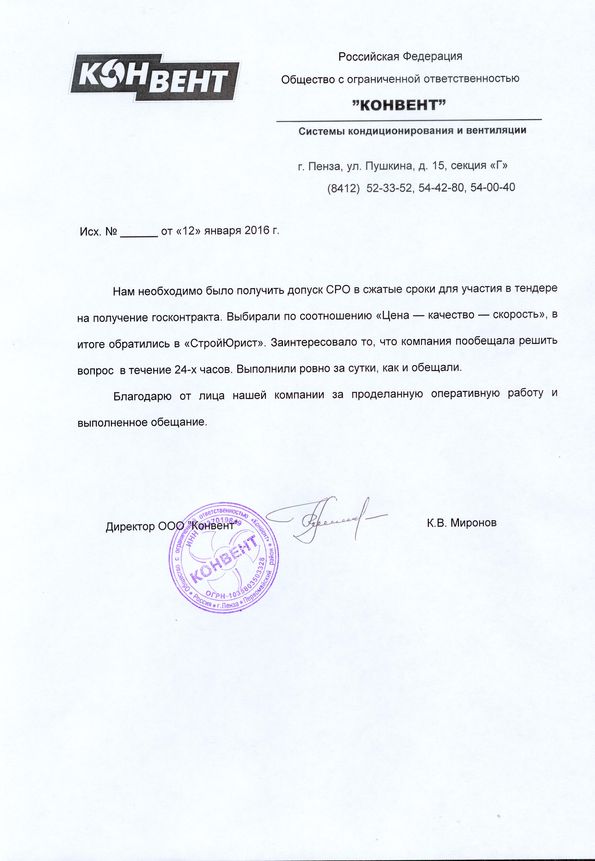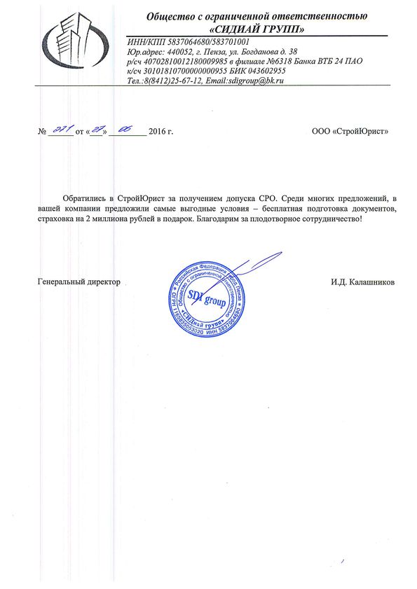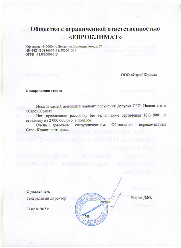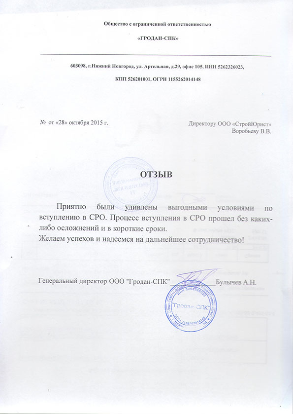 Отзывы клиентов "СтройЮрист" по вступлению в СРО в Ханты-Мансийске