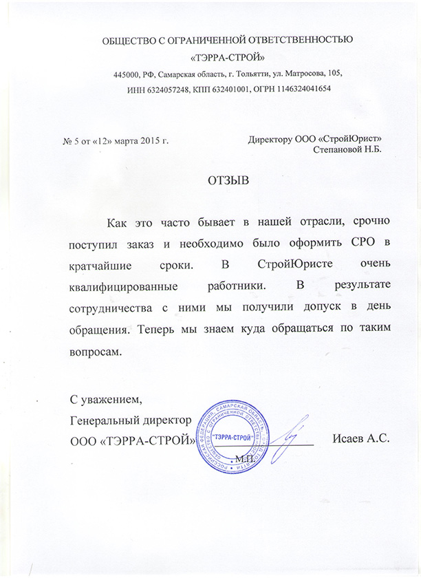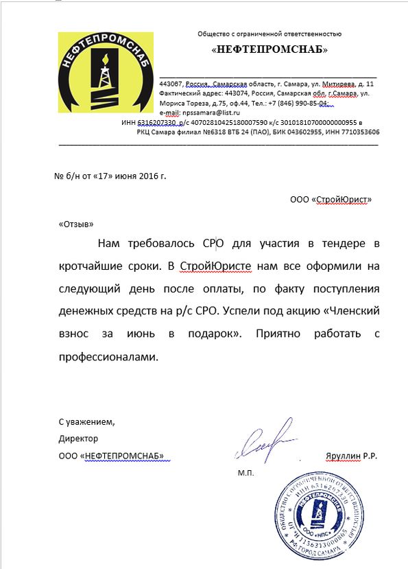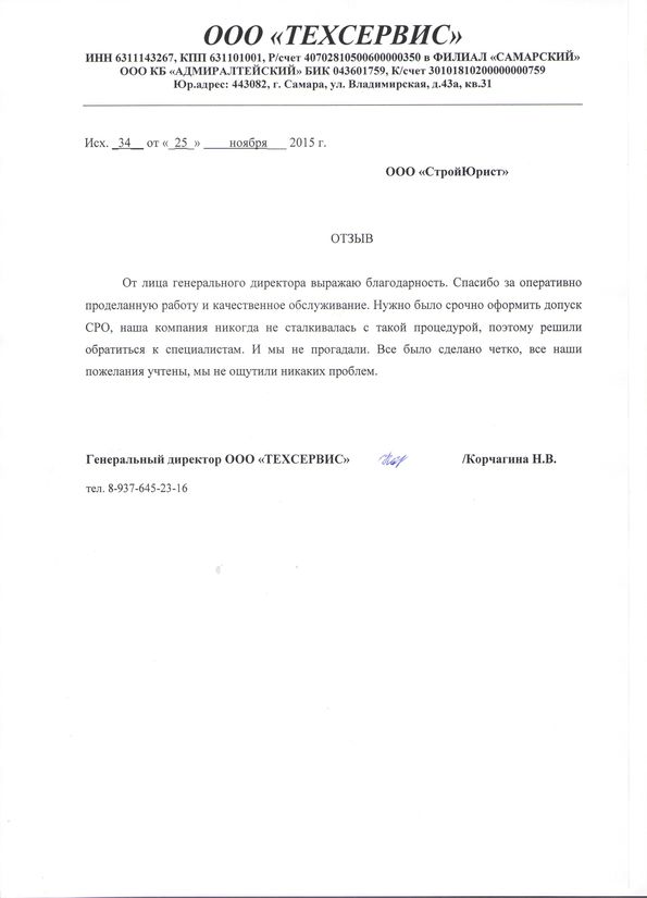 Отзывы клиентов "СтройЮрист" по вступлению в СРО в Ханты-Мансийске