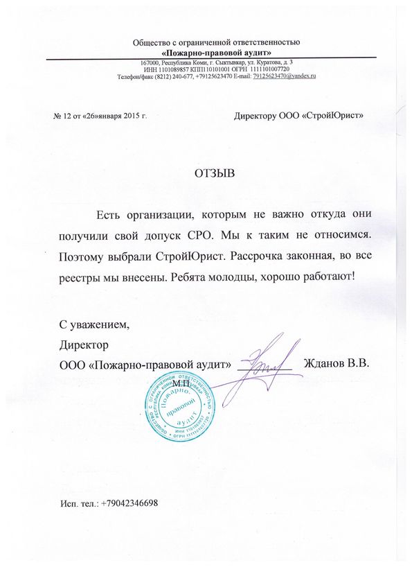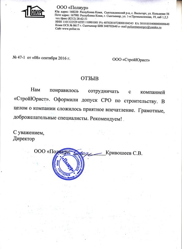 Отзывы клиентов "СтройЮрист" по вступлению в СРО в Ханты-Мансийске