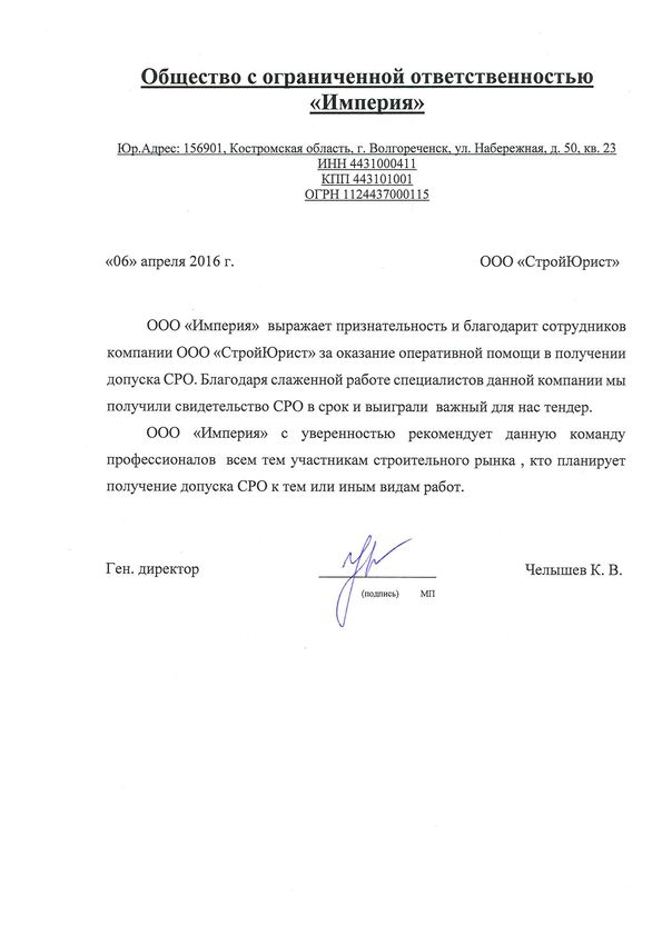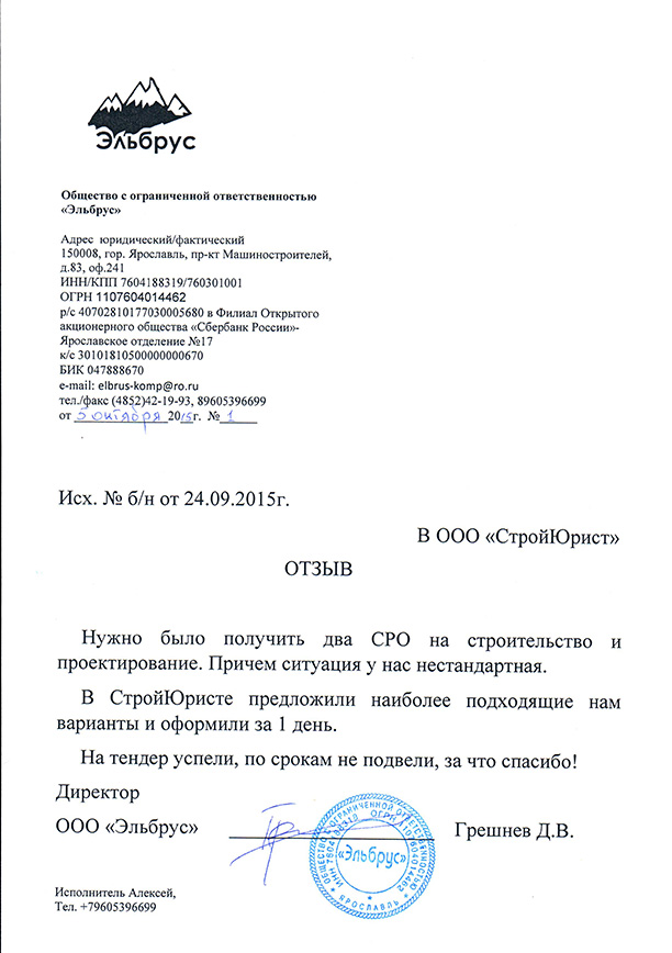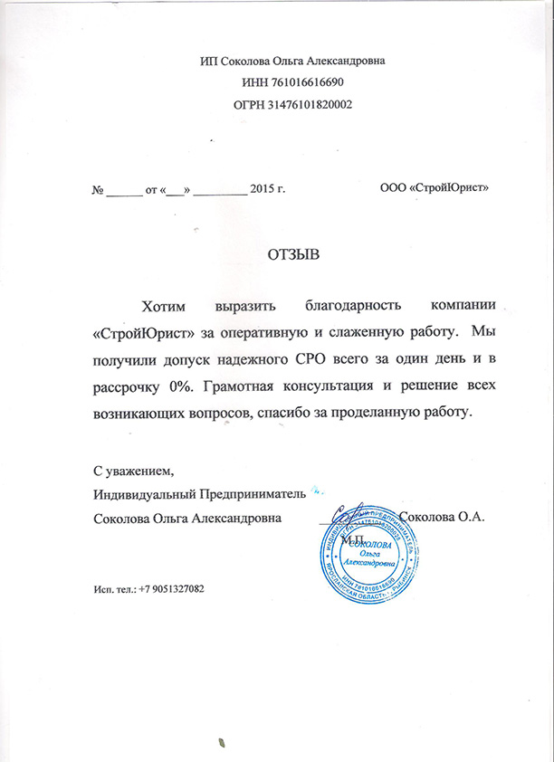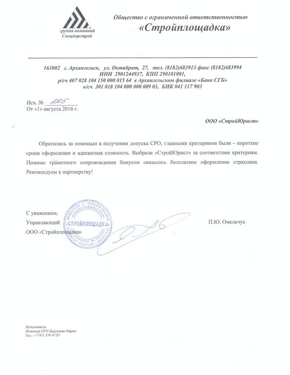 Отзывы клиентов "СтройЮрист" по вступлению в СРО в Ханты-Мансийске