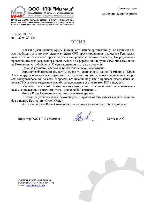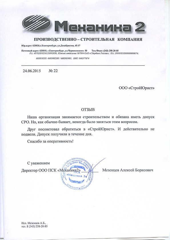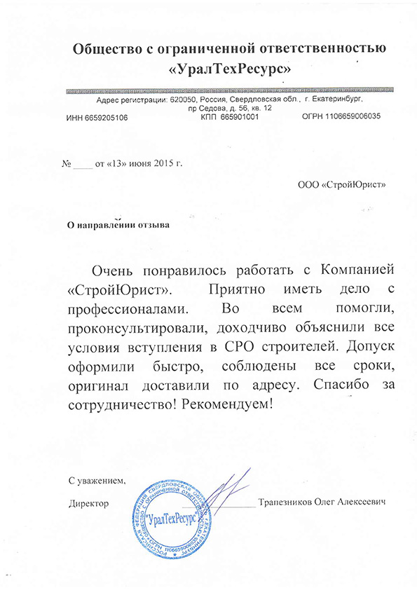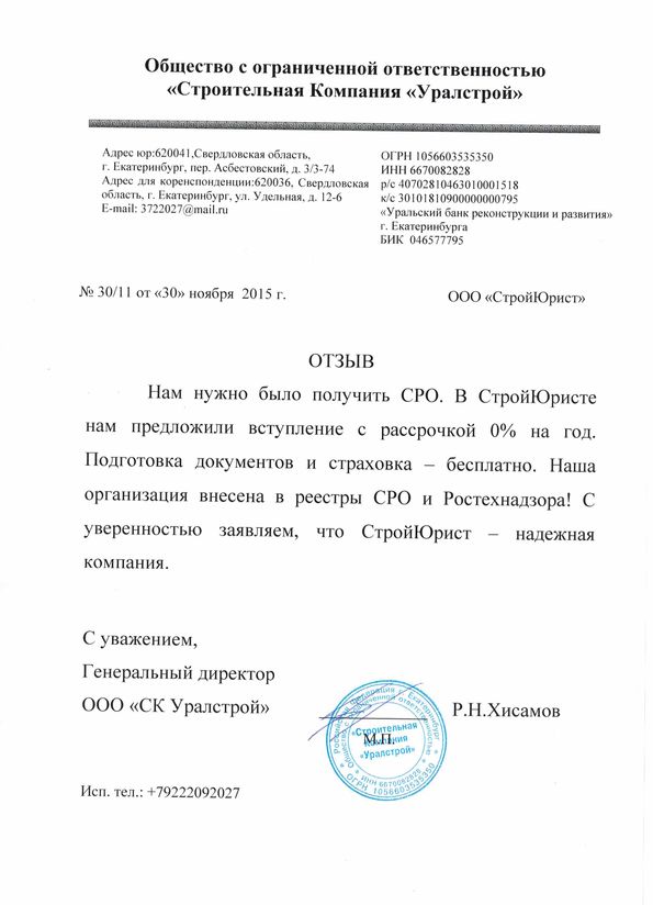 Отзывы клиентов "СтройЮрист" по вступлению в СРО в Ханты-Мансийске