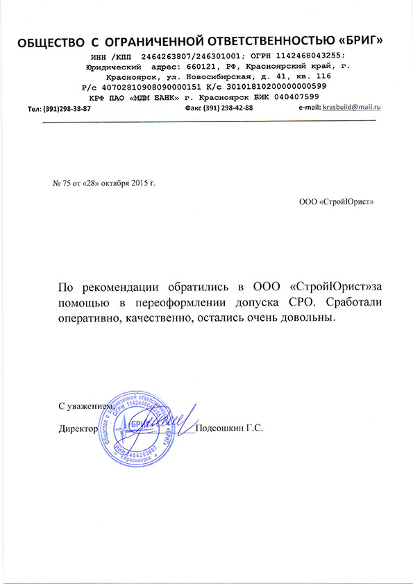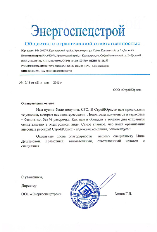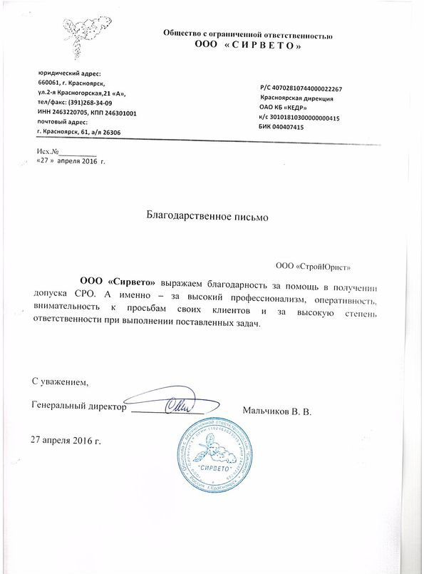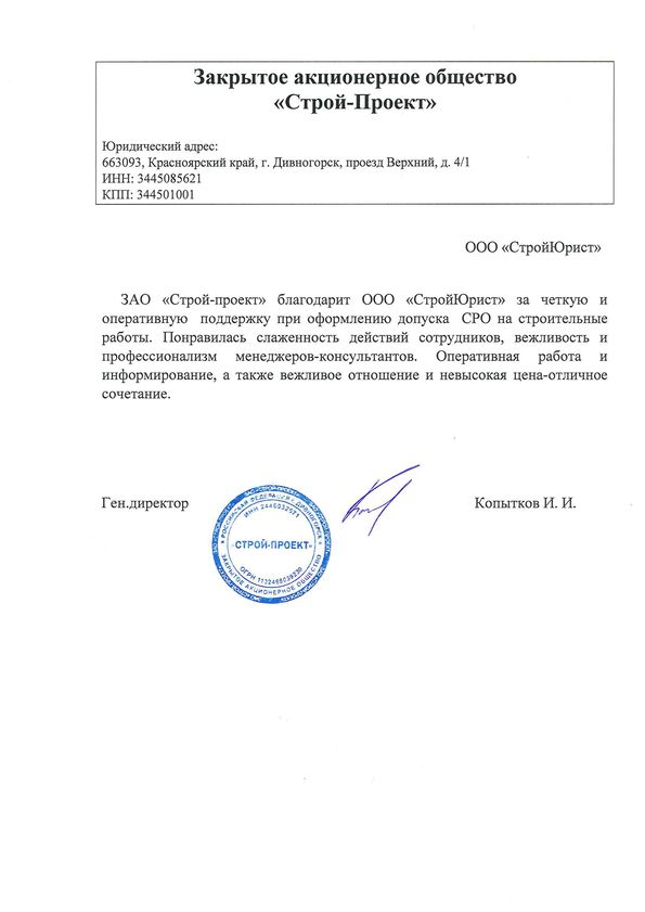 Отзывы клиентов "СтройЮрист" по вступлению в СРО в Ханты-Мансийске