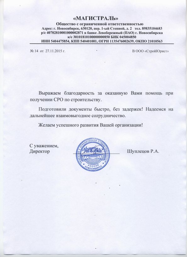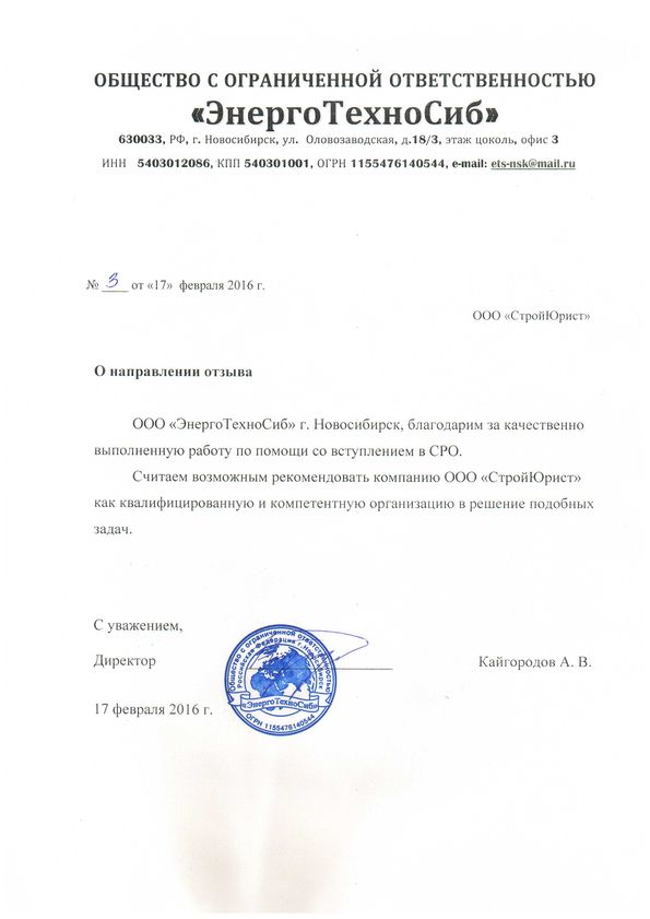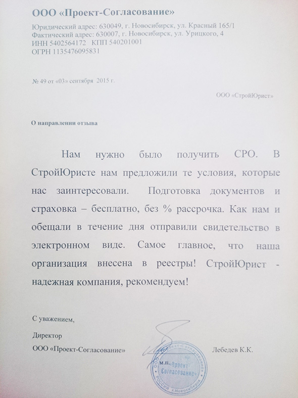 Отзывы клиентов "СтройЮрист" по вступлению в СРО в Ханты-Мансийске