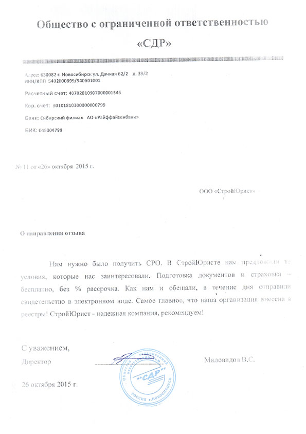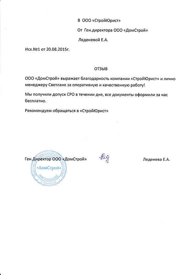 Отзывы клиентов "СтройЮрист" по вступлению в СРО в Ханты-Мансийске