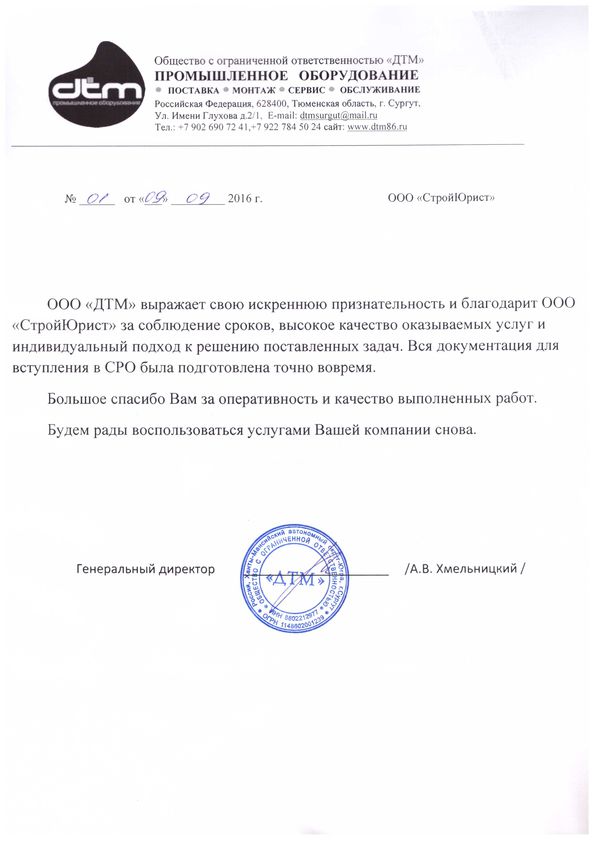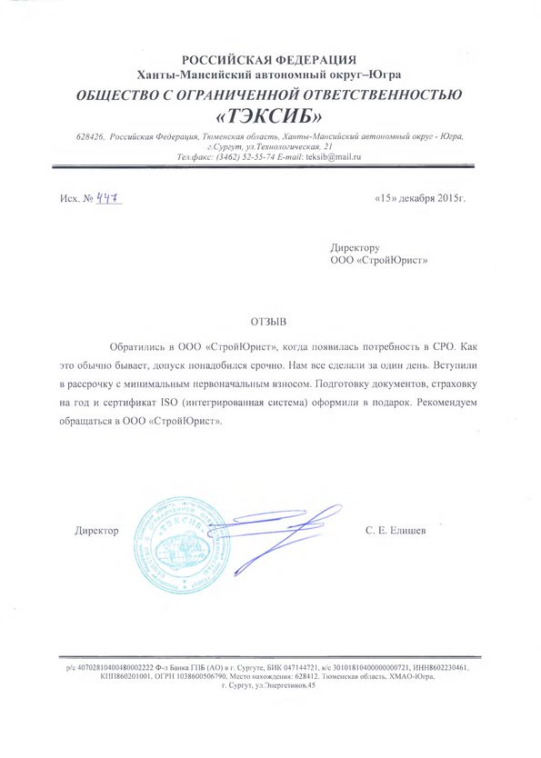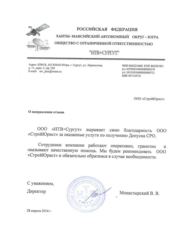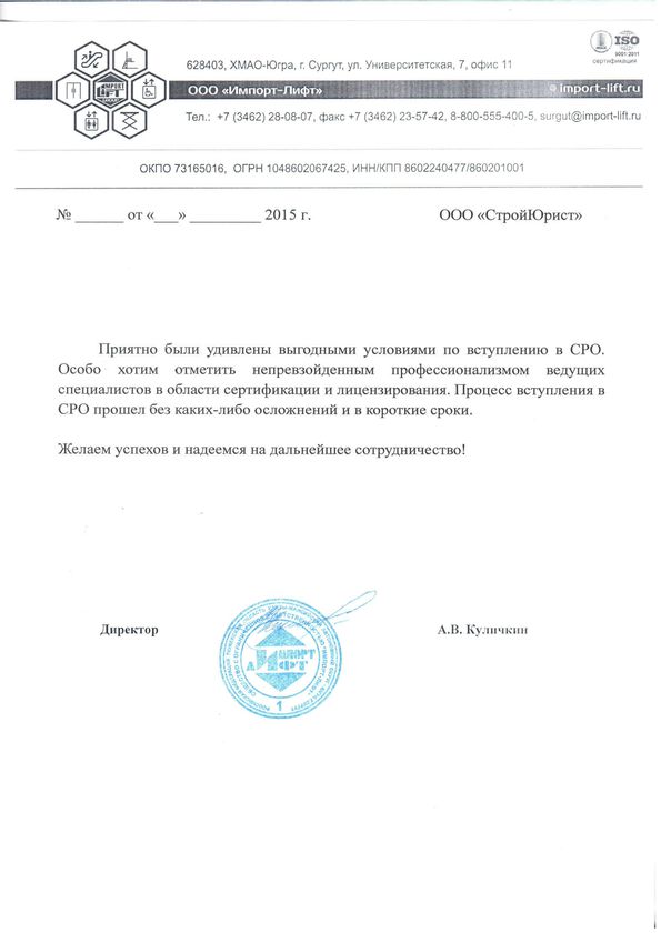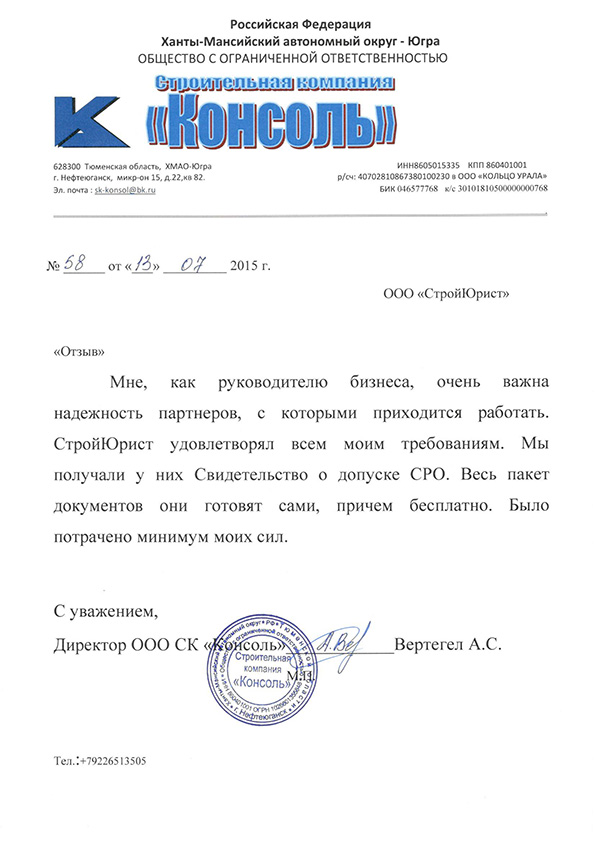 Отзывы клиентов "СтройЮрист" по вступлению в СРО в Ханты-Мансийске