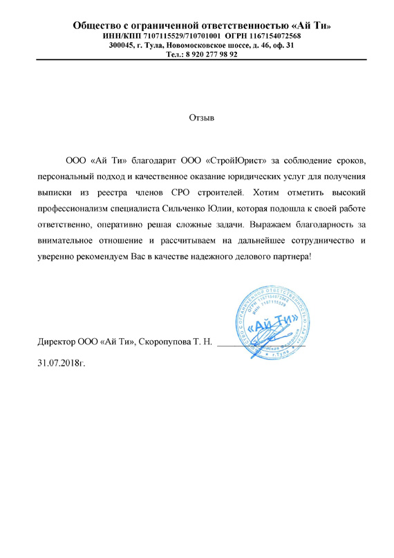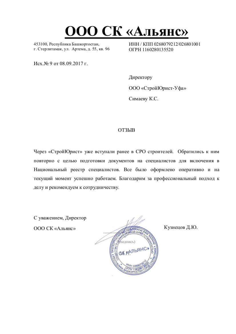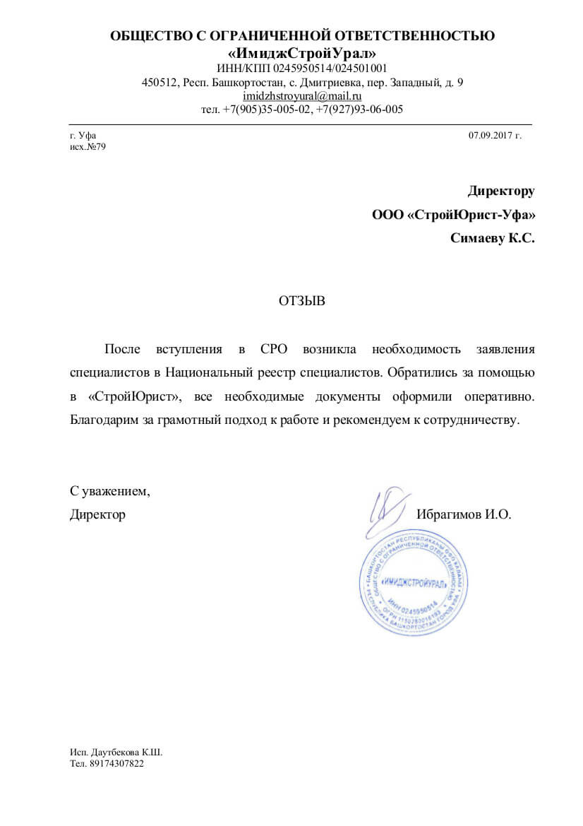 Отзывы клиентов "СтройЮрист" по вступлению в СРО в Ханты-Мансийске