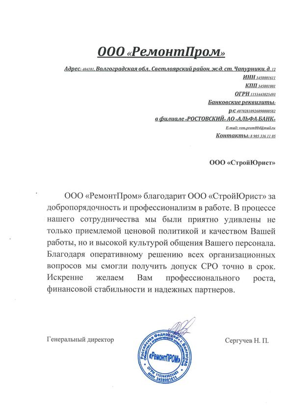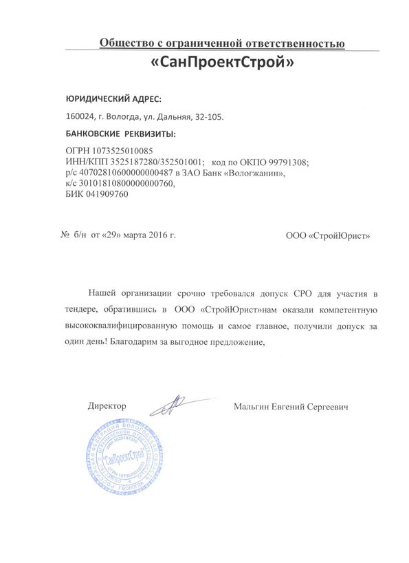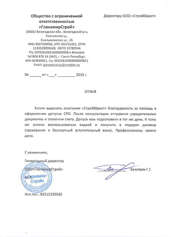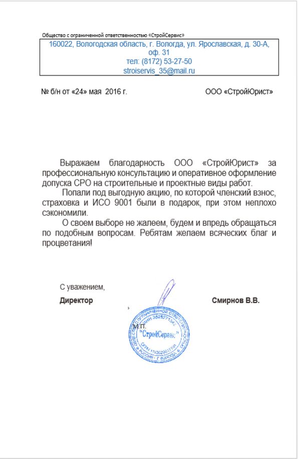 Отзывы клиентов "СтройЮрист" по вступлению в СРО в Ханты-Мансийске